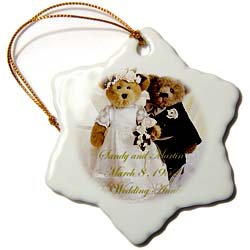 Wedding Anniversary Personalized Ornament is measuring 3 inches. This Glossy Porcelain Snowflake Ornament is perfect gift for grandparents, aunts, uncles and friends. Commemorate each holiday season with a new ornament. Image is printed on both sides. Comes with the gold hanging cord.